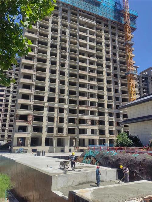 振興·龍澤灣項目3#樓旁石灰抹平工程進行中。