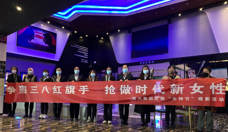 為了激勵(lì)公司廣大女職工增強(qiáng)團(tuán)隊(duì)意識(shí),在新時(shí)代的大舞臺(tái)不斷提升自我,振興集團(tuán)公司于3月8日下午,給予全體女職工帶薪休假半天,并由工會(huì)組織全體女職工開(kāi)展集體觀影活動(dòng)。