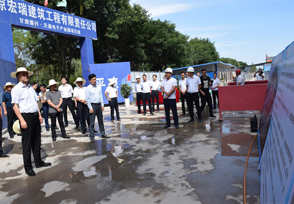 2019年8月7日下午,市委書記郭承錄帶領(lǐng)觀摩督查組蒞臨甘肅振興·天通電子(物流)產(chǎn)業(yè)園現(xiàn)場觀摩督查項目建設(shè),平?jīng)鍪姓衽d集團副董事長鄭龍、總經(jīng)理鄭虎及項目管理人員陪同此次觀摩督查工作。