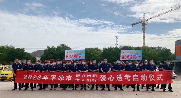 2022年6月6日上午,平?jīng)鍪姓衽d集團(tuán)下屬的振興出租公司,優(yōu)e出行網(wǎng)約車公司以“愛心送考,為夢護(hù)航”為主題的公益活動在平?jīng)鍪嗅轻紖^(qū)工業(yè)園區(qū)甘肅振興天通電子物流團(tuán)舉行啟動儀式。啟動儀式上平?jīng)鍪械缆愤\(yùn)輸管理局樊昌明科長發(fā)表了真誠的講話,表達(dá)了對莘莘學(xué)子的殷切期盼,同時也號召廣大駕駛員們積極響應(yīng),匯聚愛心,共同展示社會文明風(fēng)采。平?jīng)鍪芯C合執(zhí)法隊六科科長劉偉紅就高考期間車輛安全出行進(jìn)行重要部署,強(qiáng)調(diào)安全第一。儀式最后,由振興集團(tuán)總經(jīng)理鄭虎宣布“愛心送考”儀式全面啟動。