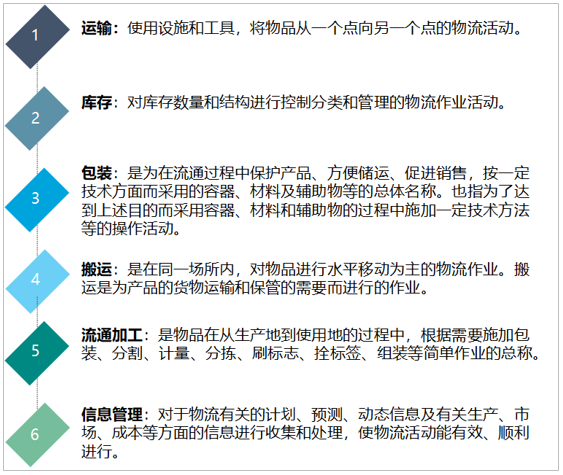 中國(guó)物流行業(yè)起步較晚,隨著國(guó)民經(jīng)濟(jì)的飛速發(fā)展,中國(guó)物流行業(yè)保持較快增長(zhǎng)速度,物流體系不斷完善,行業(yè)運(yùn)行日益成熟和規(guī)范。具體內(nèi)容包括以下幾個(gè)方面:用戶服務(wù)、需求預(yù)測(cè)、訂單處理、配送、存貨控制、運(yùn)輸、倉庫管理、工廠和倉庫的布局與選址、搬運(yùn)裝卸、采購(gòu)、包裝、情報(bào)信息。